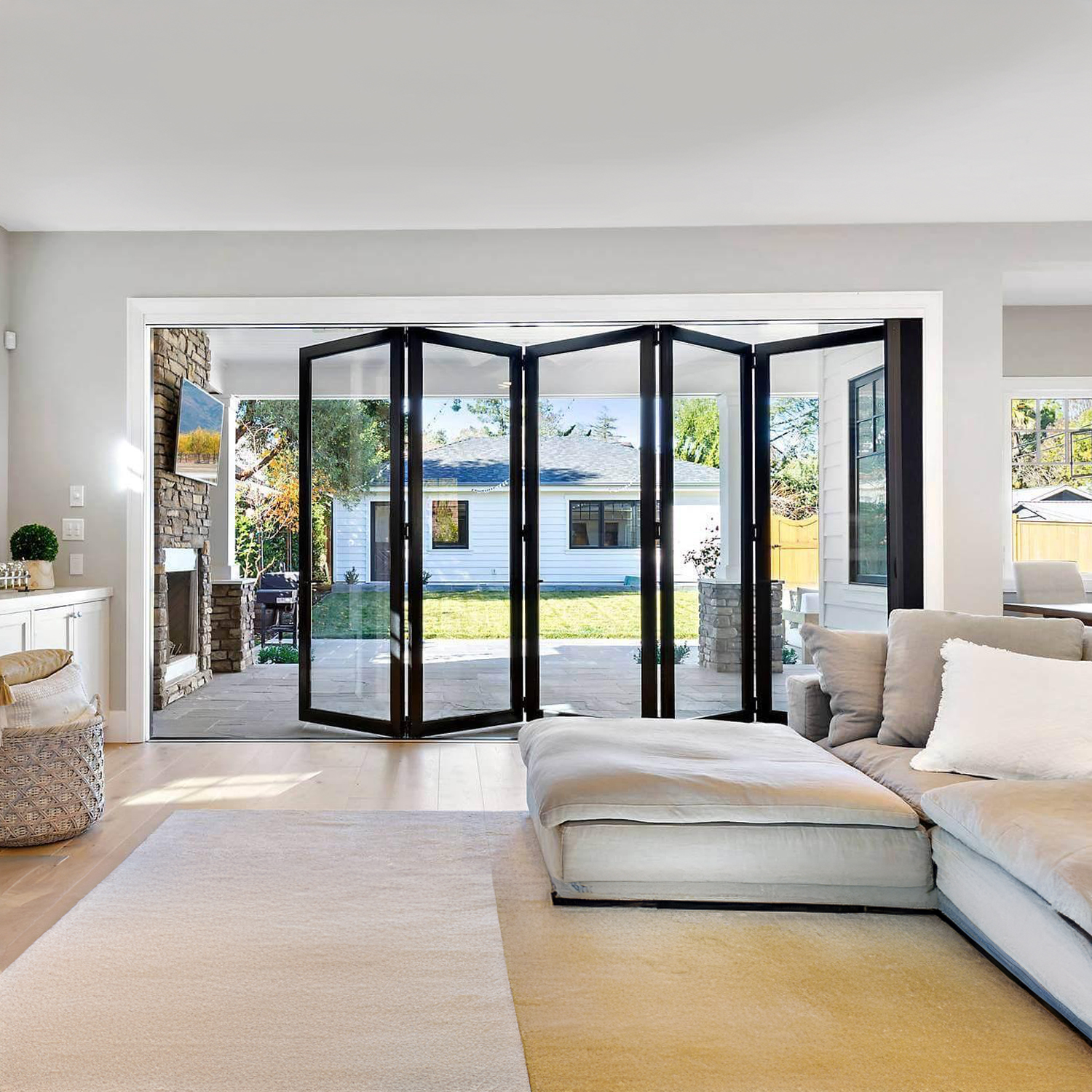 Aluminum Powder-Coated Bifold Patio Door with Double Tempered Glass – Elegant Indoor-Outdoor Transition