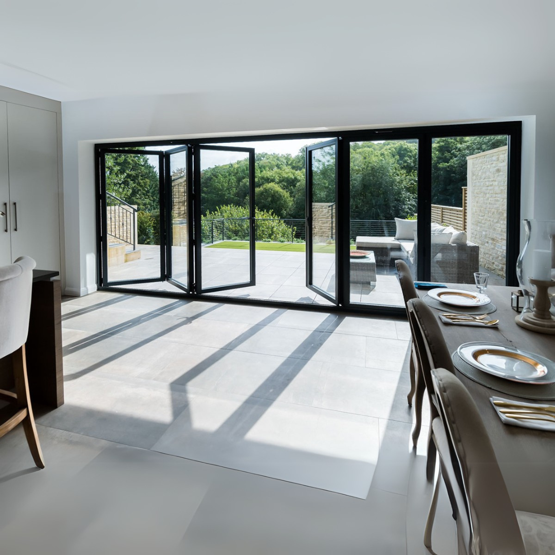 Aluminum Powder-Coated Bifold Patio Door with Double Tempered Glass – Elegant Indoor-Outdoor Transition