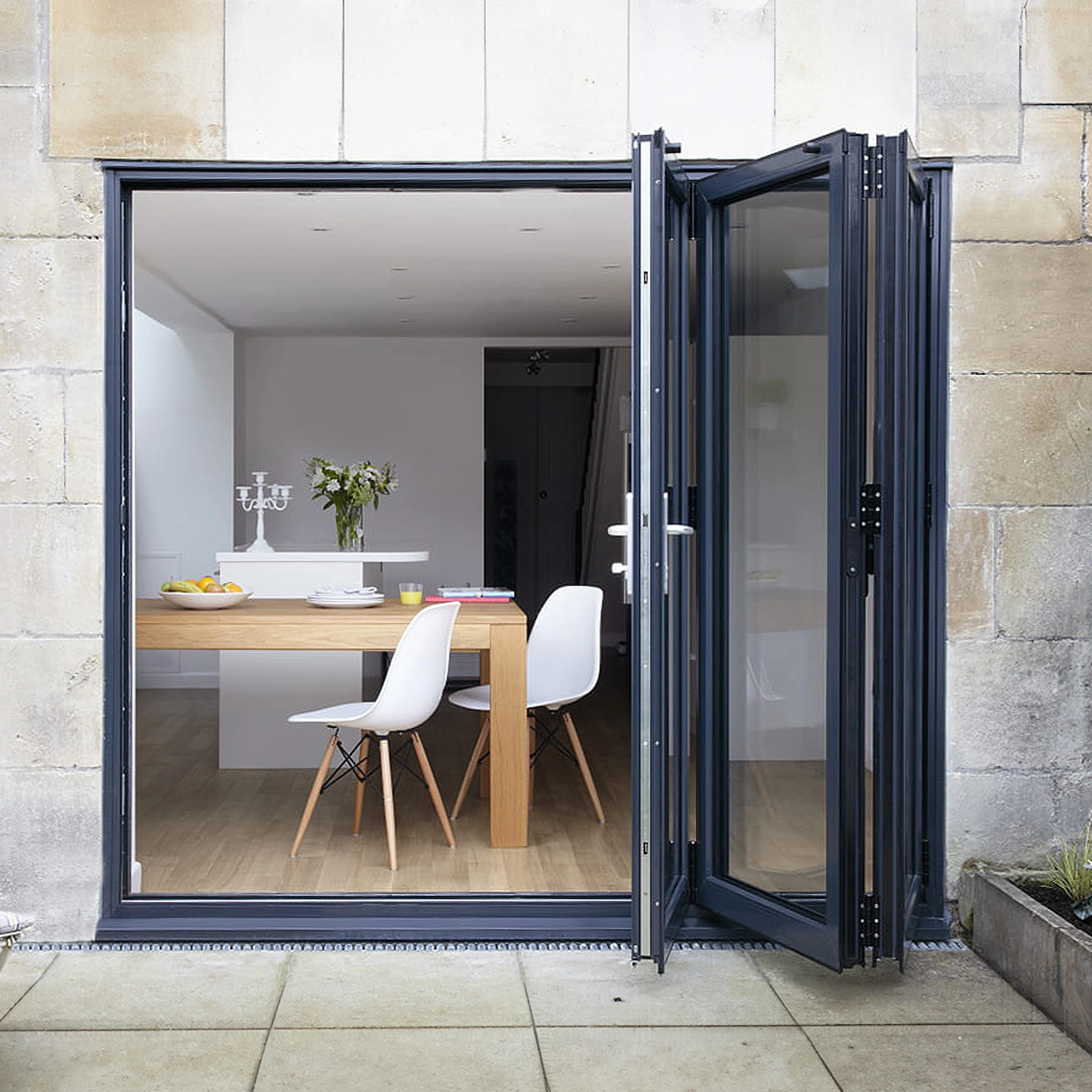 Aluminum Powder-Coated Bifold Patio Door with Double Tempered Glass – Elegant Indoor-Outdoor Transition